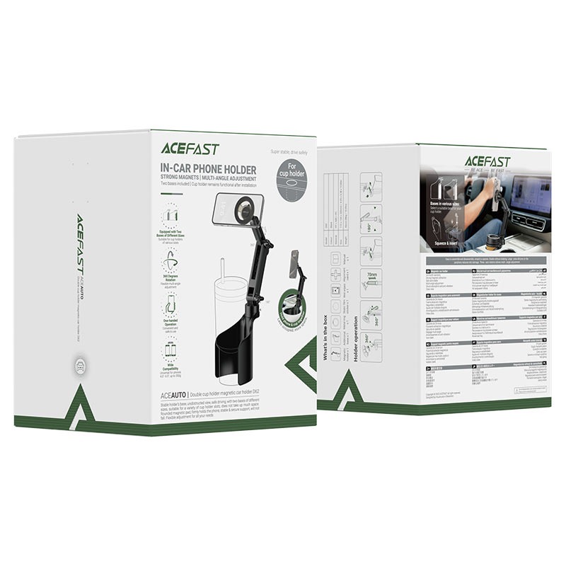 Автомобильный магнитный держатель ACEFAST D62 magnetic car phone holder — это удобное решение для надежной фиксации смартфона в автомобиле. Модель устанавливается в подстаканник, поэтому не требует клея, присосок или сложного монтажа и подходит практически для любого автомобиля. Такая конструкция позволяет разместить телефон на комфортной высоте и легко менять положение устройства во время поездки.