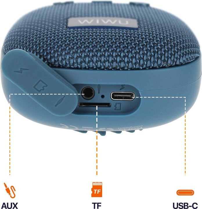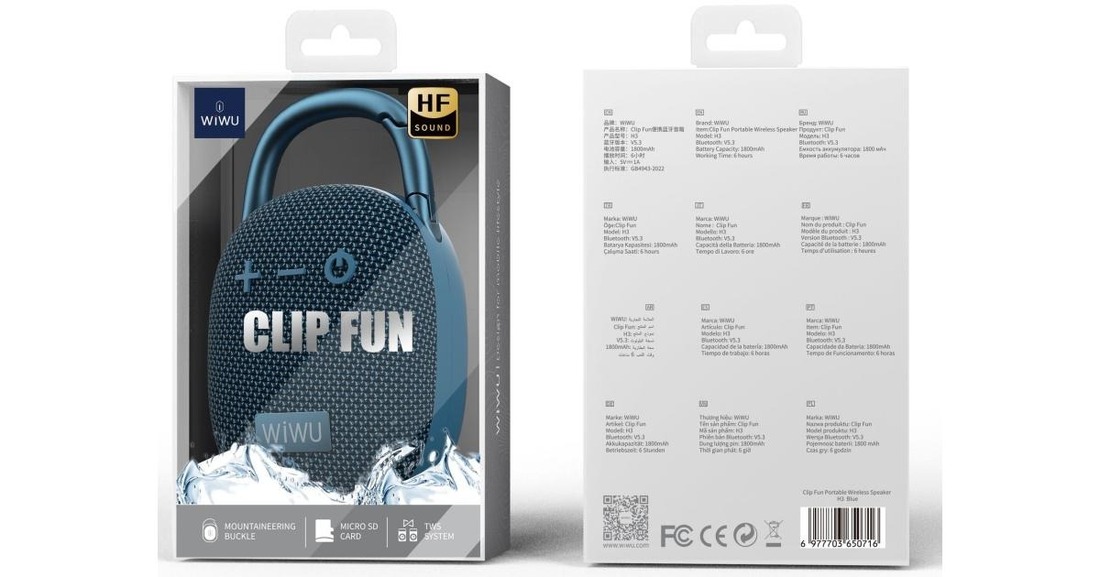 Wiwu Clip Fun Portable H3 — компактная Bluetooth-колонка, которая станет отличным подарком для всех, кто любит музыку в движении. Незаменима в путешествиях, на природе, в поездке или на пикнике.