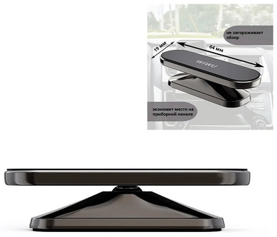 Автомобильный держатель для телефона Wiwu PL701 BlackПредставляет собой маленький плоский магнитный держатель для смартфонов. Он изготовлен из цинкового сплава и имеет прочную конструкцию. Каждый водитель оценит способность фиксатора надежно удерживать гаджет, несмотря на маленькие габариты. Такой аксессуар для машины станет отличным мини подарком по поводу и без для автолюбителей. Магнитный держатель WiWU имеет аккуратный и стильный внешний вид. Компактная конструкция этого полезного девайса экономит место на приборной панели автомобиля и не загораживает обзор.