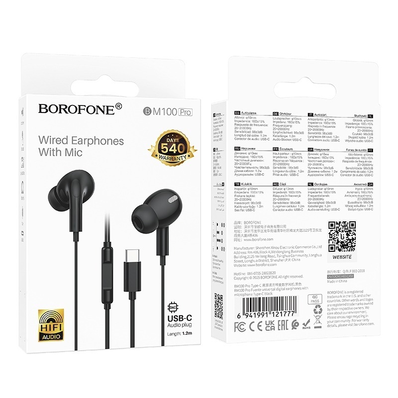 Проводные наушники Borofone BM100 Pro Fuente Universal Digital с микрофоном Type-C — это современная гарнитура, сочетающая компактный дизайн и цифровое качество звука. Изготовленные из прочного АБС-пластика и гибкого термопластичного эластомера (ТПЭ), они обеспечивают комфортное ношение и чёткое звучание благодаря цифровому разъёму Type-C.