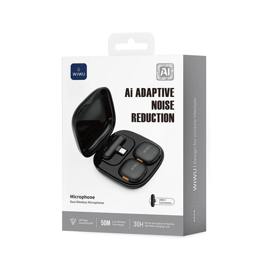 Встроенный зарядный кейс обеспечивает до 30 часов работы от батареи, а быстрая зарядка, позволяющая получить 1 час работы всего за 10 минут, делает его идеальным выбором для тех, кто никогда не останавливается. Будь то прямая трансляция в TikTok, съемка видео для YouTube или подкастинг на ходу — WiWU Wi-WM006 защитит ваш голос.