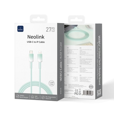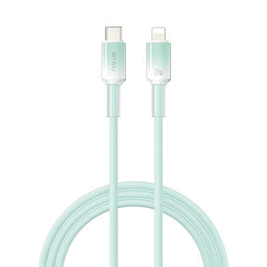 Кабель WiWU Wi-C062 — это кристально чистый зарядный кабель USB-C — Lightning, изготовленный из высококачественного жидкого силикона. Обеспечивает быструю зарядку мощностью 27 Вт для iPhone и iPad, имеет гибкое мягкое покрытие, предотвращающее спутывание и перегибы. Доступен в белом цвете длиной 2 м и розовом или зеленом цвете длиной 1 м. Этот кабель сочетает в себе прочность и стильный минималистичный дизайн. Соответствует стандартам Q/RMM018-2017 для безопасной и эффективной зарядки.