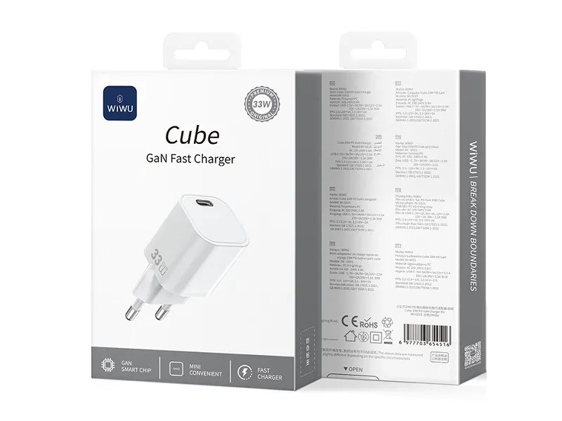 Зарядное устройство выполнено в стильном белом корпусе, которое легко впишется в любой интерьер. Благодаря компактным размерам его удобно брать с собой в поездку или использовать дома. Оно совместимо с большинством современных стандартов быстрой зарядки, поэтому ваше устройство будет заряжаться на очень высокой скорости. Еще один отличительный признак WIWU Cube Wi-G015 EU 33W GaN White – это ее универсальность.